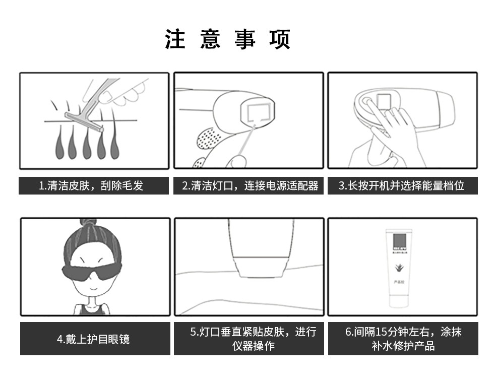 全身脫毛 · 單閃OR連打 · 智能膚色檢測 · 靜毛不反復(fù) · 50萬次閃光